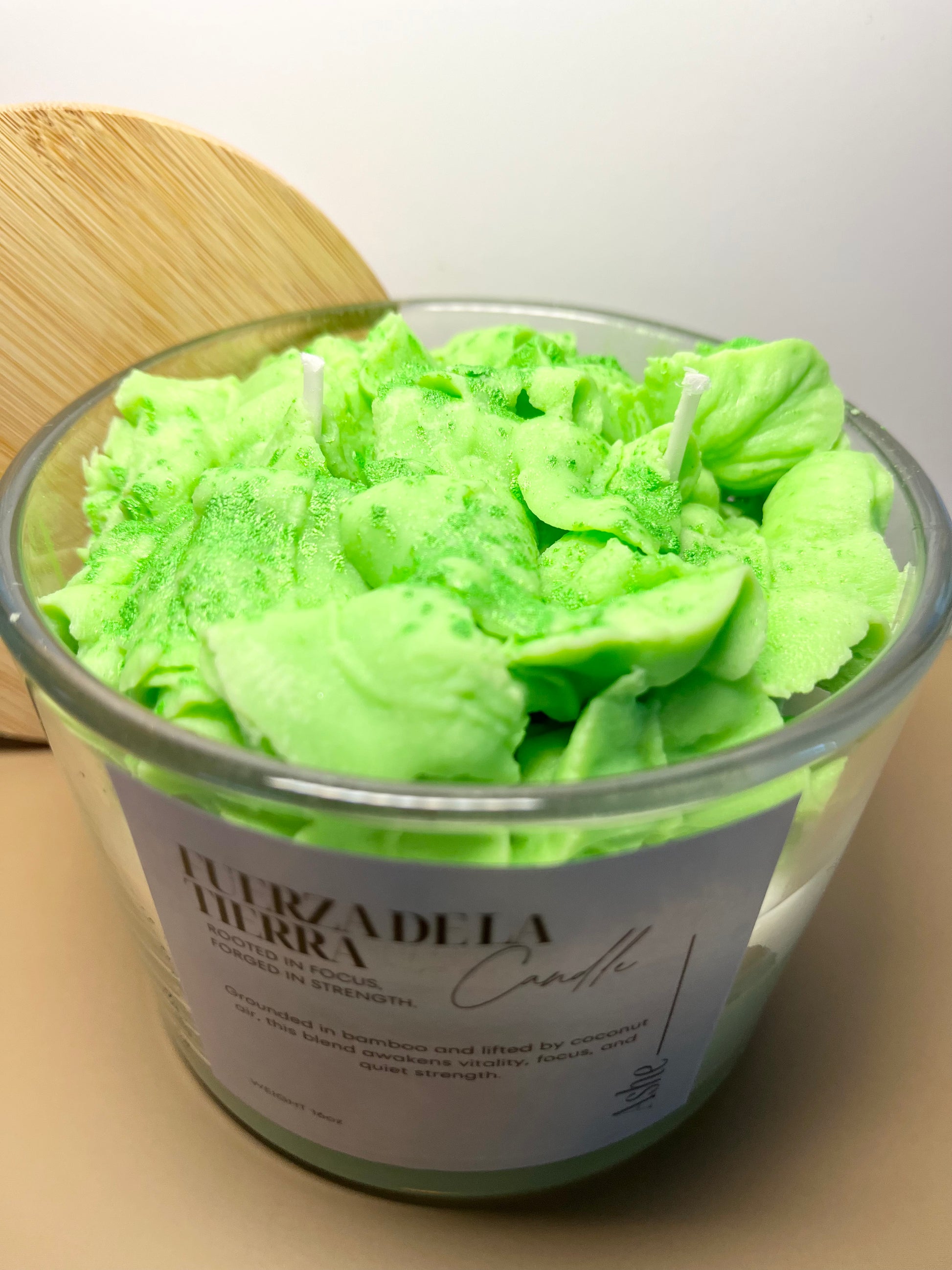 Deep green candle with tropical notes of spearmint, bamboo and coconut. Invigorating and grounding, this candle encourages focus, clarity, and quiet strength.